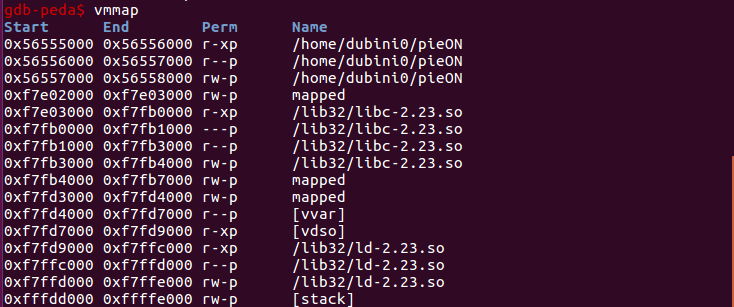 다음과 같이 스택을 제외한 바이너리의 주소까지도 offset만을 가지고 있고, 실행시 바뀌게 됩니다. 실습으로 직접 해보는 걸로 합시다.
