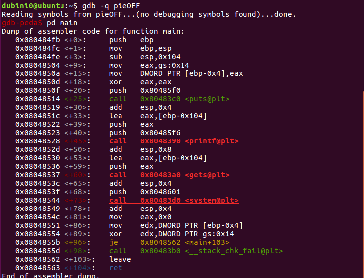 gcc -m32 -mpreferred-stack-boundary=2 pie.c -o pieOFF