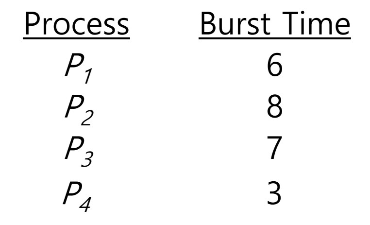 다음과 같이 프로세스들이 queue에 쌓여있다고 가정하면,