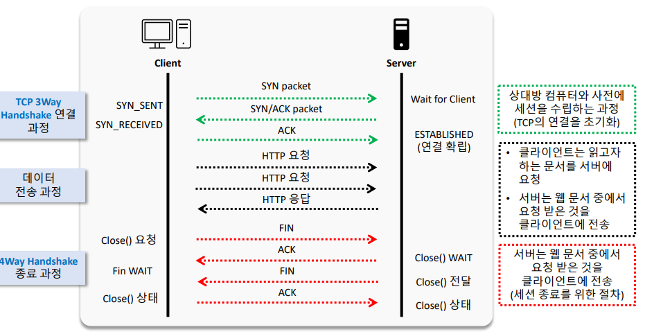 - 응용계층(Application Layer): HTTP, SMTP, FTP, Telnet