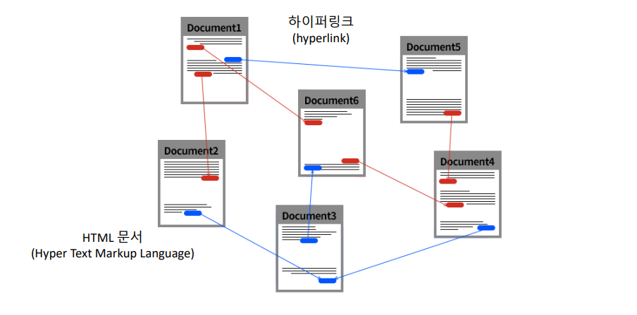 - 인터넷에 연결된 컴퓨터들이 하이퍼텍스트(hypertext)형식으로 연결되고 표현됨