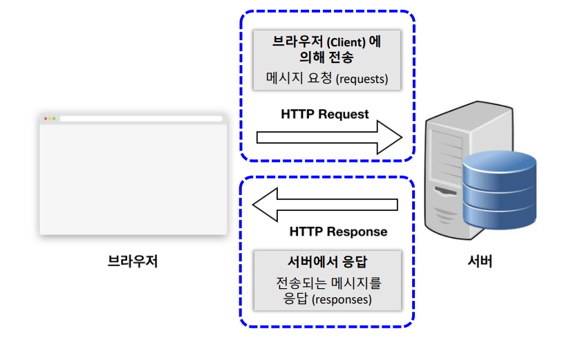 - HTTP 요청 전송시 인터넷을 통해 서버 영역으로 전달
