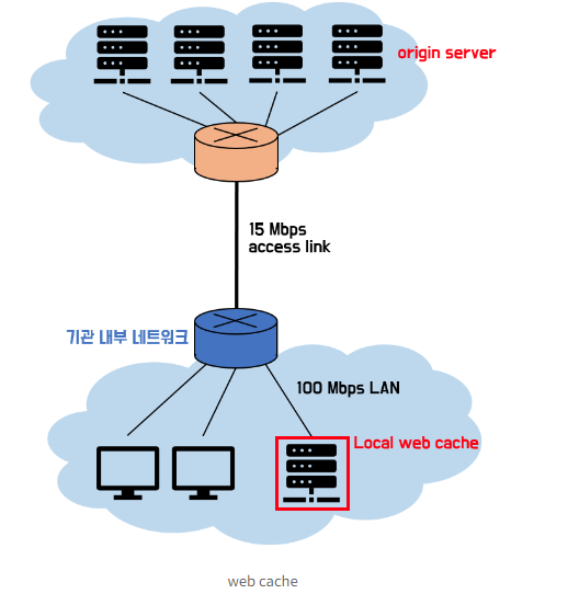 - 웹 캐싱을 통해 웹의 속도를 향상(데이터 전송시간), 대역폭 (외부 트래픽 감소)을 줄일 수 있음